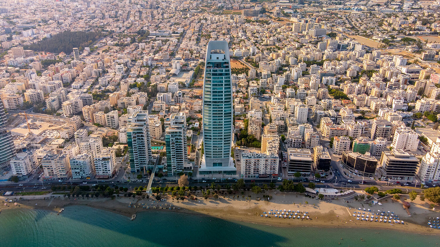 In Limassol, work began in 2016 on a construction site of superlatives. Since its completion in 2022, the ONE Tower has towered high above the city. With its height of 170 metres, it has made it to the top of two rankings at once: Limassol's new landmark is the tallest building in Cyprus and at the same time the tallest residential building on a beach in the eastern Mediterranean.