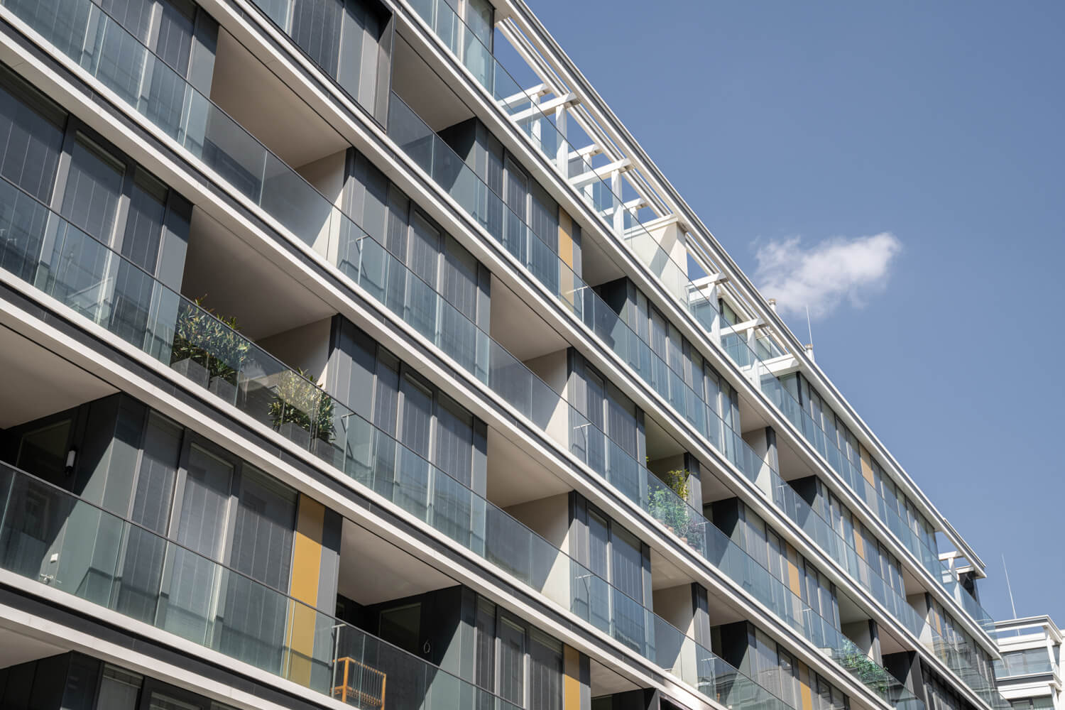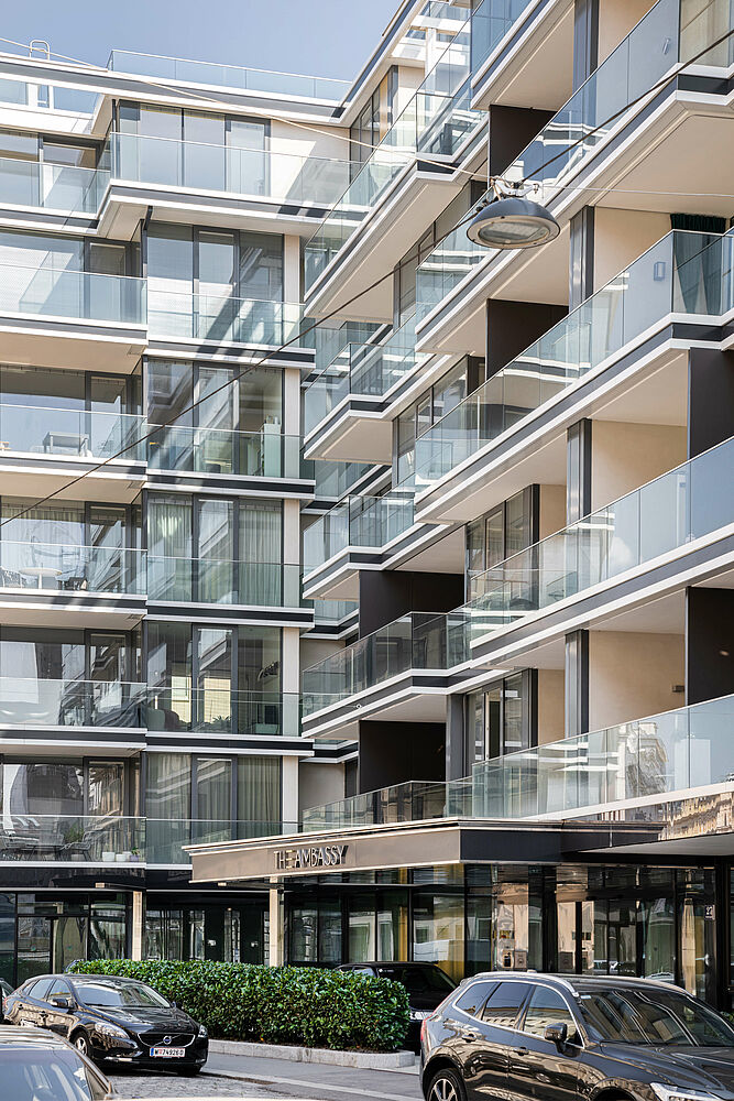The flats are furnished with high-quality and noble materials and offer a stylish and sophisticated ambience. The extraordinary architecture with the open façade, extensive glazing with floor-to-ceiling windows as well as loggias, balconies and terraces complete the picture and make The Ambassy a landmark building in Vienna.