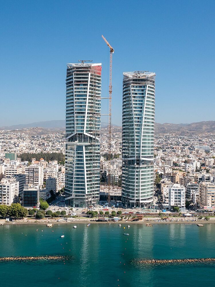 The west and east towers stand at the very front by the sea. The north tower rises from the ground, set back. The large area between the towers forms the so-called oasis and the plaza. For the residents of the towers, the oasis is exactly what its name suggests: Space to relax. In addition to lushly landscaped sunbathing areas and pools, sports fields are available. The Plaza, in the front area towards the beach, is also a lively meeting place and offers a wide selection of restaurants, bars and cafés to satisfy culinary lovers. The centre of Limassol is also only a long walk away. So, in addition to a quiet location by the sea and the best amenities right on the doorstep, the users of the towers are also offered immediate proximity to the city.