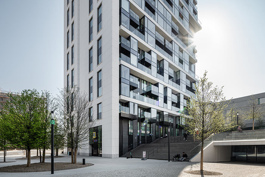 In addition to upscale gastronomy, the base of the property complex also houses shopping facilities for neighbourhood supply. The feel-good package is rounded off by a spa area and a roof terrace with pool.
