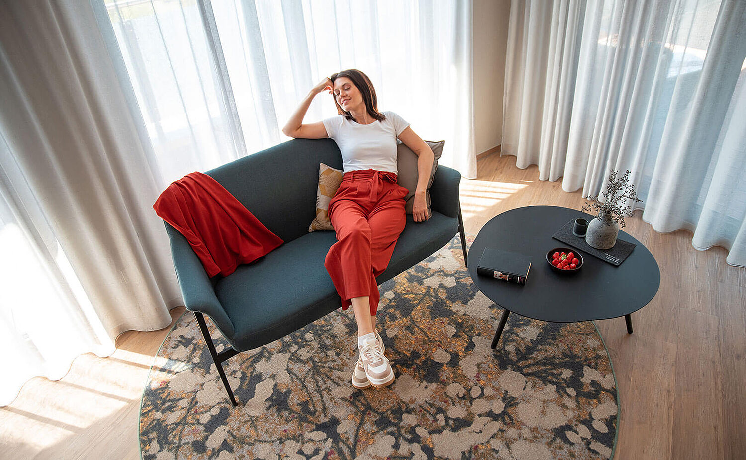 The roof terrace of this family-run hotel is a central part of the guest experience. It extends the outdoor space, invites guests to relax and is used intensively by visitors. However, it is precisely this use that presented an acoustic challenge: below the terrace is the luxurious wellness suite penthouse, whose peace and privacy must always be maintained. Even light footsteps or the movement of terrace furniture can be disruptive here.