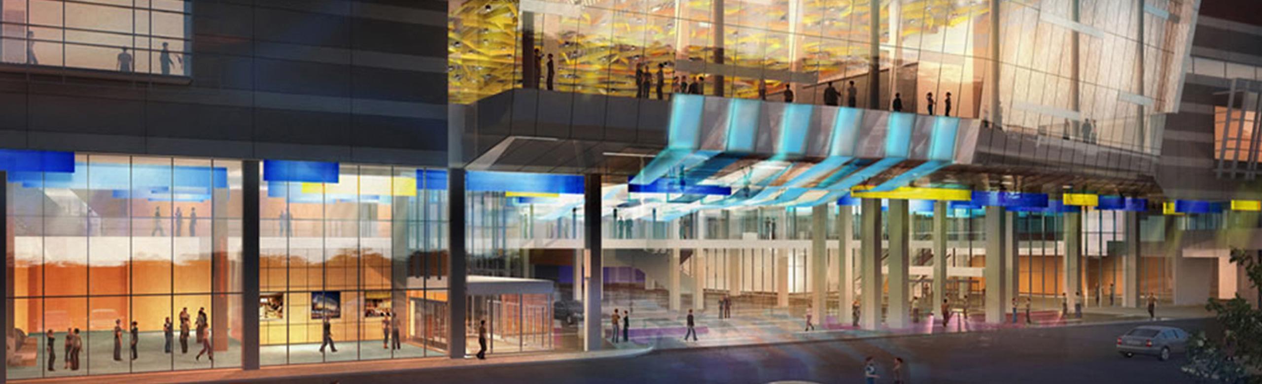 The 1975 RBC Convention Center in downtown Winnipeg, MB is extended by 31 600m², while the existing building receives structural and electrical upgrades as well. This extended facility will make it the fourth largest publicly owned, as well as the newest convention center in Canada. It is designed to meet Leadership in Energy and Environmental Design (LEED) Silver Standards. A huge portion of the exhibition area is located over ballroom space, meeting rooms, the Presentation Theater, a café and other retail stores. The main concern in regards to acoustical isolation were trucks driving into the exhibition hall, as well as fit-up noise from metal wheel carts, smaller vehicles, objects being dropped (impact), and other construction noise.