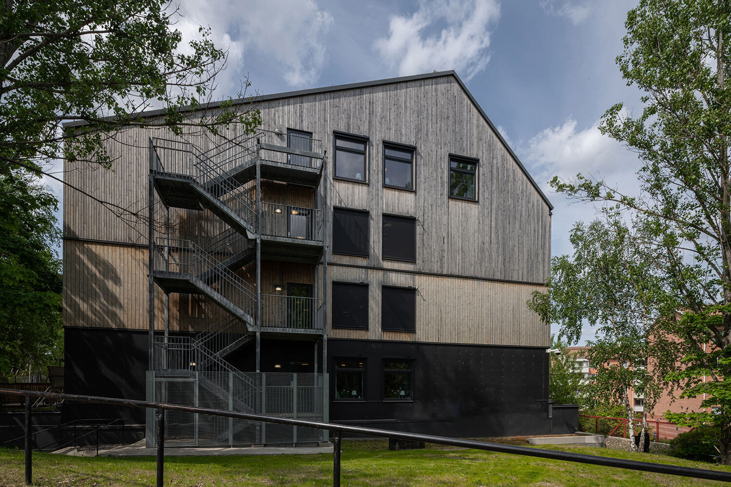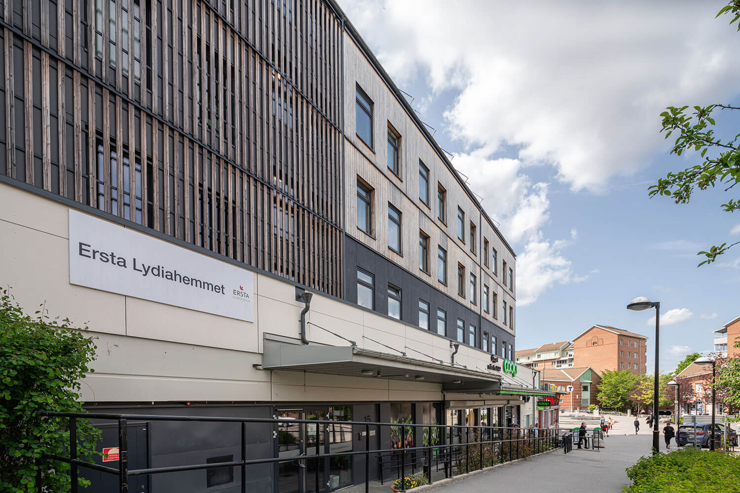 Lydiahemmet, located in Farsta Strand in the south of Stockholm, is a care and retirement home that is remarkable in several ways: Not only was it built using sustainable timber construction methods, but it is also located directly above the terminus of the Tunnelbana line 18. The building houses 54 individual apartments for people in need of care who suffer from somatic or dementia-related illnesses and offers round-the-clock care – a use that places the highest demands on comfort, peace and security.